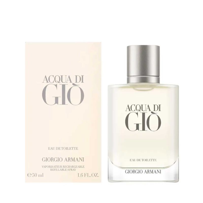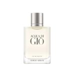 Acqua di Giò Eau de Toilette captura la esencia del Mediterráneo. La fragancia comienza con notas marinas y de bergamota, que crean su frescor emblemático. El corazón tiene una mezcla de jazmín, madera de cedro y romero, con unas notas aromáticas que evocan el paisaje mediterráneo. Las notas de fondo de almizcles blancos y pachuli capturan la fuerza masculina de la fragancia. Acqua di Giò Eau de Toilette marca el comienzo de la fragancia y sigue siendo su sello original. Su frasco nuevo y moderno conserva el vidrio esmerilado, emblema de la fragancia, ahora con un degradado hacia cristal transparente en la base. Como parte del compromiso de Giorgio Armani por un futuro mejor, este icono es recargable.