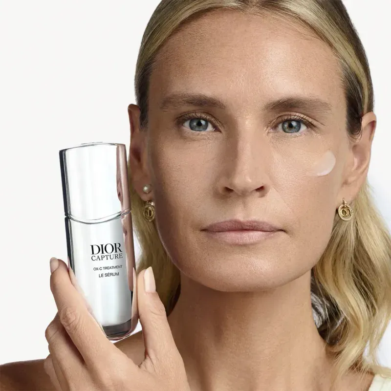 PIONERO EN CÉLULAS MADRE TRAS 40 AÑOS DE INVESTIGACIÓN Inspirándose en la medicina regenerativa, Dior Capture reinventa el icónico sérum facial en una fórmula que ofrece resultados en tan solo 7 días: las arrugas se rellenan visiblemente, la piel parece más firme y el rostro más joven. Este sérum facial encapsula OX-C Treatment con poder regenerador y rellenador: esta tecnología promueve la regeneración cutánea y triplica la producción de colágeno¹ al actuar sobre el transporte de oxígeno. Gracias a un exo-liposoma pro-penetrante, una doble vectorización patentada² , OX-C Treatment se difunde en profundidad y de forma continua en la piel durante 8 horas³ . El tratamiento facial Dior Capture Le Sérum está formulado con un 97 % de ingredientes de origen natural⁴ . ¹ Test in vitro sobre los ingredientes. ² Patente en tramitación FR3144515. ³ Test ex vivo de los ingredientes. ⁴ Valor calculado de conformidad con la norma ISO 16128-1 e ISO 16128- 2. Porcentaje de agua incluido. El 3 % restante contribuye al rendimiento, la sensorialidad y la estabilidad de la fórmula. Desde la aplicación, Dior Capture Le Sérum proporciona a la piel un efecto tensor inmediato. Día tras día, las arrugas se alisan, la piel está más firme y luce un aspecto más joven.