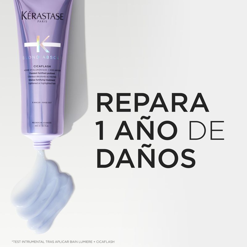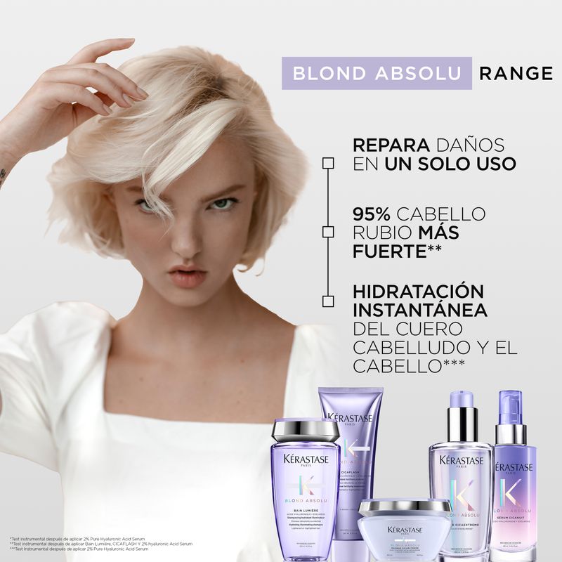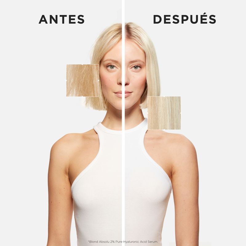 Trata instantáneamente las áreas más dañadas del cabello. Le devuelve la suavidad y el brillo al cabello, dejando un rubio brillante y saludable