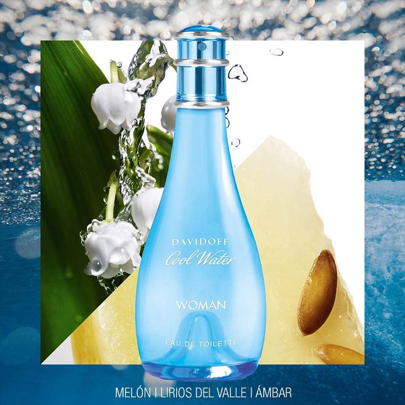Davidoff Cool Water Eau de Toilette for Woman. Descubre una fragancia femenina inspirada en la sensualidad del mar. Esta fragancia fresca captura la sensación única de belleza que evoca el océano. Las notas florales y afrutadas se elevan como una brisa, trayendo una sensual mezcla de sandía y lirio de los valles sobre almizcle. Cool Water Woman, la máxima celebración de la feminidad, la frescura y la seducción.