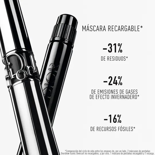 La máscara de pestañas Diorshow Iconic Overcurl es recargable en su tono negro 090: una vez terminado el envase interior, se puede renovar de forma ilimitada.