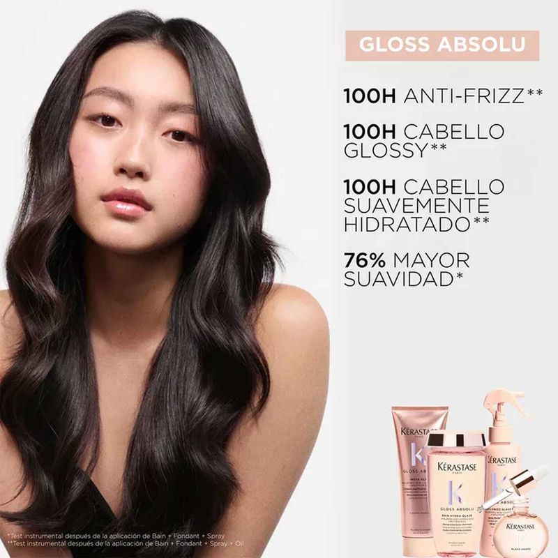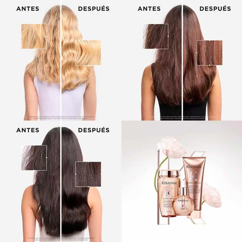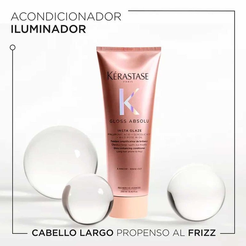 Gloss Absolu Insta-Glaze de Kérastase es un acondicionador potenciador de brillo para cabellos largos con tendencia al frizz. Está específicamente formulado con ácido hialurónico, ácido glicólico y extracto de rosa silvestre para proporcionar un cabello glossy, suave y ligero. Su secreto reside en su textura cremosa que hidrata y rellena y suaviza el cabello al instante. Con su textura cremosa y sedosa, hidrata y rellena las capas capilares en profundidad, transformando instantáneamente la fibra, mejorando la flexibilidad, facilitando el desenredado y creando una superficie increíblemente suave y regular.