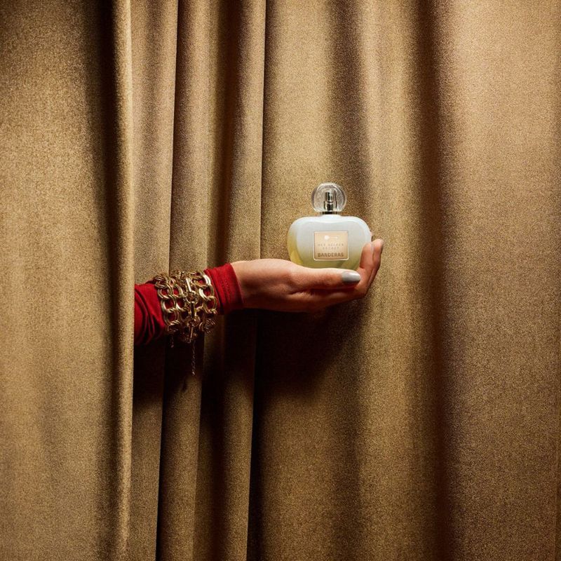 Her Golden Secret de Antonio Banderas, un concentrado de seducción imposible de resistir. Her Golden Secret conquista los sentidos con su cautivadora mezcla de madera de cedro, cachemira y pachulí suavizados por la sensualidad de la gardenia y un dulce cóctel de frutas. Un perfume que desvela el secreto de una atracción absolutamente irresistible.