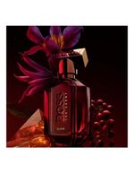 Enciende los sentidos con el cautivador BOSS The Scent Elixir para ella, una interpretación rica y altamente concentrada de la fragancia original BOSS The Scent femenino. Este Elixir ambarino y amaderado cautiva al instante, comenzando con un fresco toque de pimienta rosa, junto con facetas ardientes que amplifican el atractivo de la fragancia. En el corazón de esta fragancia para mujeres, notas florales de Atropa Belladonna seducen con un sentido de misterio y emoción, dejando una estela embriagadora. La base potencia las ricas notas ambarinas de la composición, que evocan una sensación de vitalidad, calidez y sensualidad nocturna. La icónica botella de BOSS The Scent está vestida con el mismo vidrio laca rojo profundo que su contraparte masculina, reflejando la intensidad seductora de la hipnótica fragancia en su interior. La botella está rematada con una tapa dorada cálida que presenta un acabado brillante y lujoso, reflejando los acentos metálicos brillantes del empaque exterior.