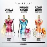 Fruto de una imaginación estimulante, La Belle Flower Edition es la flor más fascinante de la jungla psicodélica de Gaultier. Esta edición efímera, con su majestuoso estuche acidulado, revela la belleza sobrenatural de una feminidad hechizante. En el cuello de su frasco desnudo, los pétalos rosas de un aroma floral afrutado ambarino despiertan el deseo indomable de las pasiones.