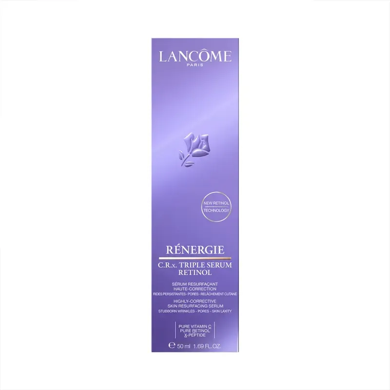 Experimentá la innovación más revolucionaria en cuidado facial con Rénergie C.R.x. Triple Serum Retinol de Lancôme. Este sérum de triple acción combina por primera vez tres potentes activos en cámaras separadas para garantizar su máxima eficacia: el poder corrector del retinol puro, el poder iluminador de la vitamina C pura y la acción calmante del Péptido-X. Tres sueros ultra potentes unidos en una sola triple dosis para alcanzar lo imposible: piel 100% renovada, una aceleración más rápida que la brindada por retinol solo*.
