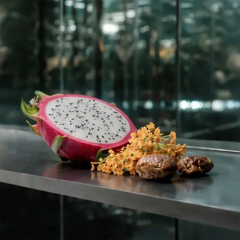 Notas de Salida: Fruta del dragón (Pitahaya) | Flor de almendro | Bergamota